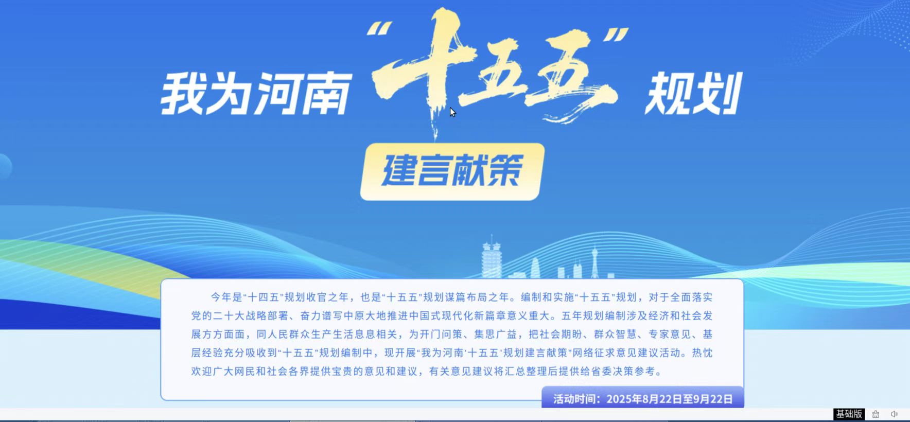 • 關于開展“我為河南‘十五五’規(guī)劃建言獻策”網(wǎng)絡征求意見建議活動的公告